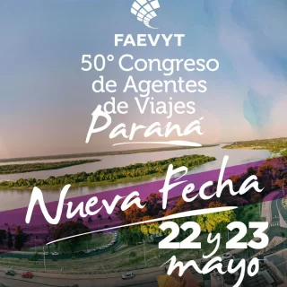 6 marzo, 2025 por ViajandoConVos · Published 6 marzo, 2025 NUEVA FECHA PARA LA 50° EDICIÓN DEL CONGRESO DE AGENTES DE VIAJES FAEVYT: 22 Y 23 DE MAYO EN PARANÁ, ENTRE RÍOS Compartir enLa Federación Argentina de Asociaciones de Empresas de Viajes y Turismo – FAEVYT- realizará su edición número 50 del Congreso...